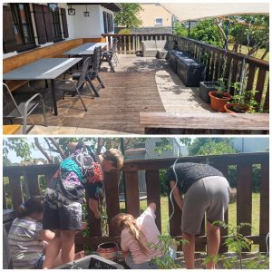 Neben all dem Spaß wurde auch angepackt: Unsere Terrasse wurde in einer gemeinsamen Aktion renoviert – geschliffen, Unkraut gezupft, gestrichen und verschönert. Die Kinder und pädagogischen Fachkräfte waren mit großem Engagement dabei und hatten sichtlich Freude daran, ihr eigenes Zuhause mitzugestalten. Jetzt strahlt die Terrasse im neuen Glanz und ist bereit für das bevorstehende Sommerfest!