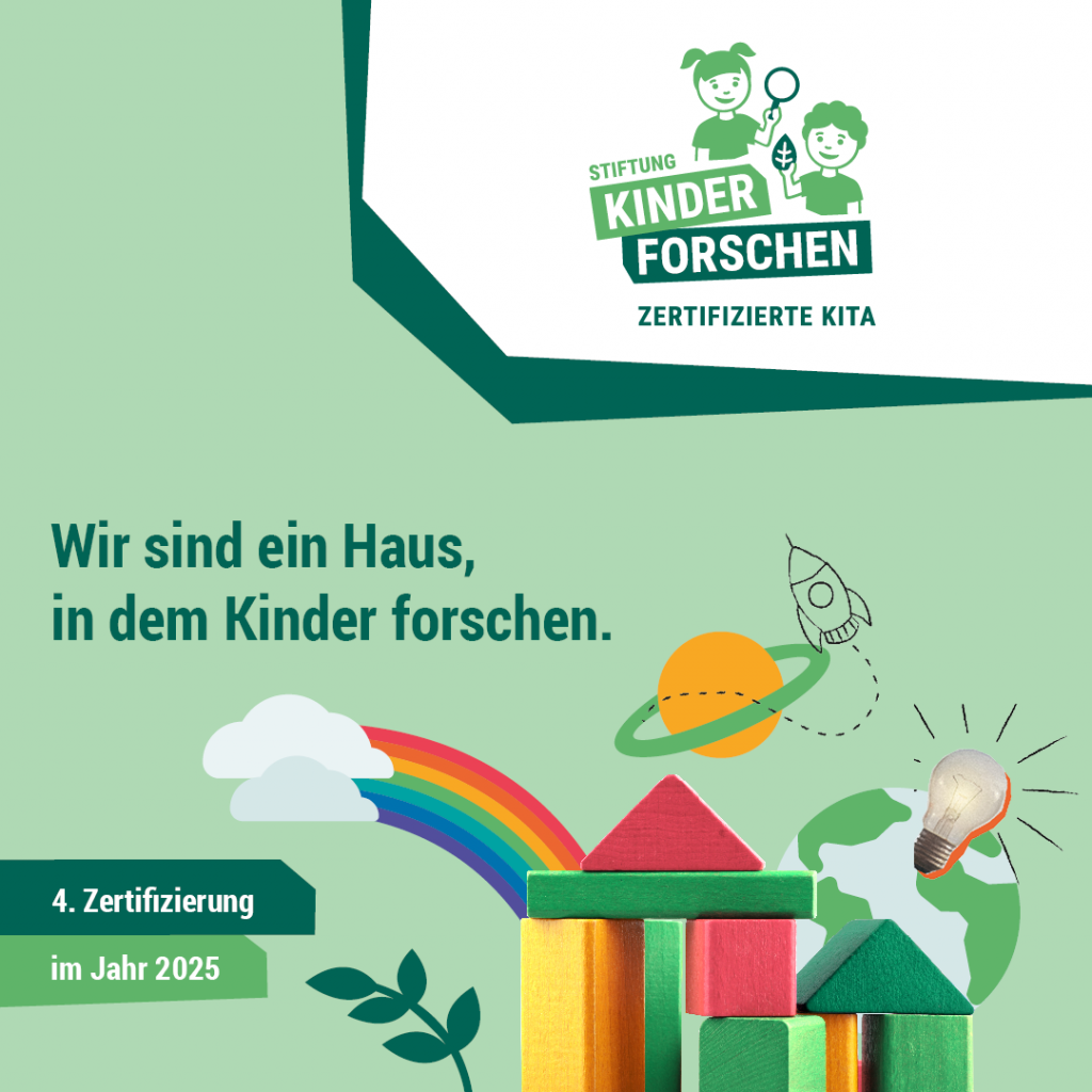 - geregelte Tagesstruktur mit vielfältigen Bildungsangeboten, Zeit zum Entdecken, Forschen und Freispiel